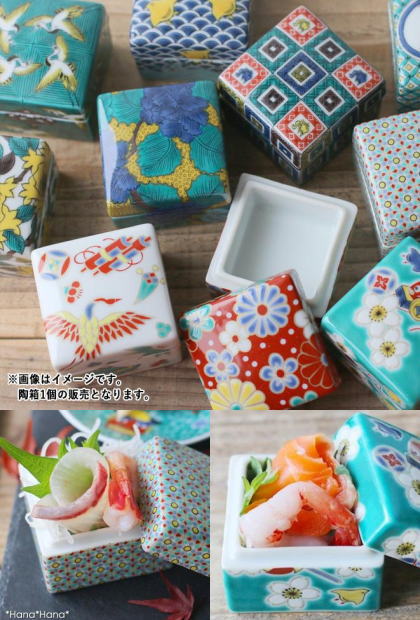 九谷焼らしい可愛い絵柄が印象的な蓋付きの陶箱
